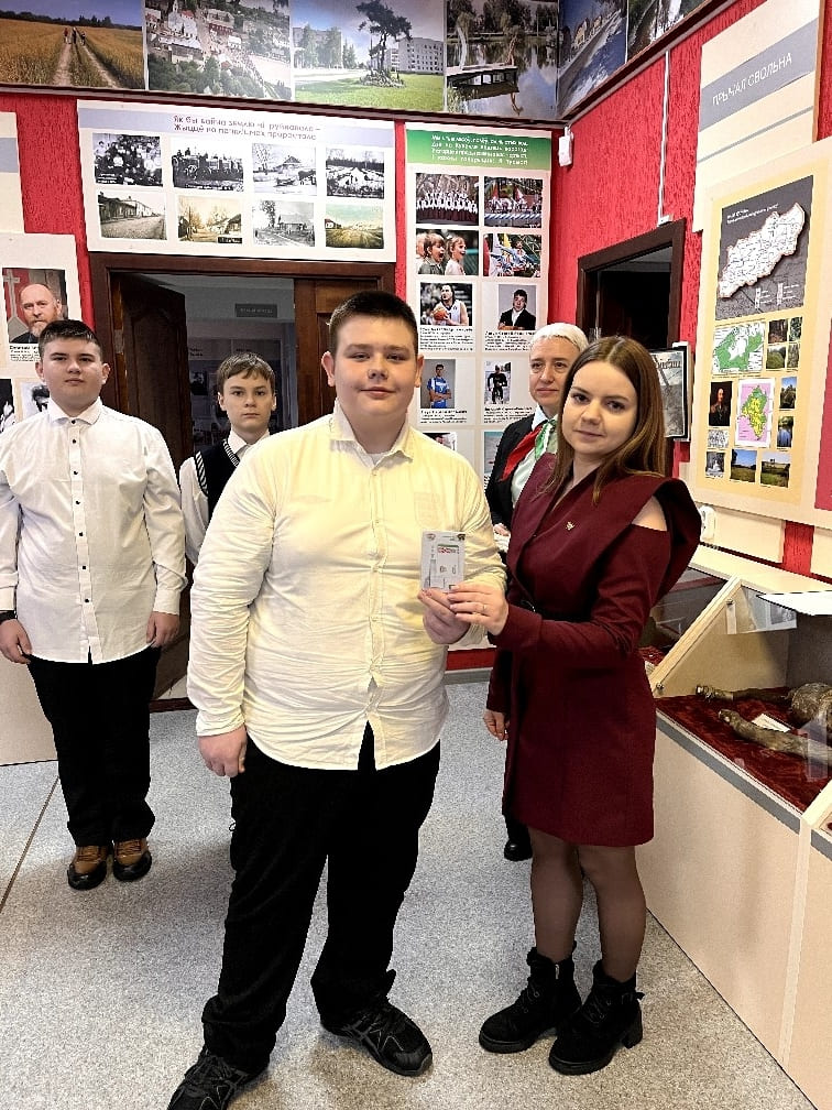 Смарт - билет и значок Белорусского республиканского союза молодежи вручала первый секретарь районного комитета ОО «БРСМ» Лапеко Дарья Вадимовна.