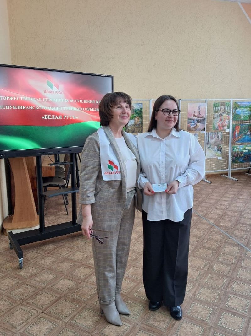 В рамках церемонии вступления в «Белую Русь» председатель районной организации И.И.Тойронен вручила членские билеты четырем новым членам объединения.
