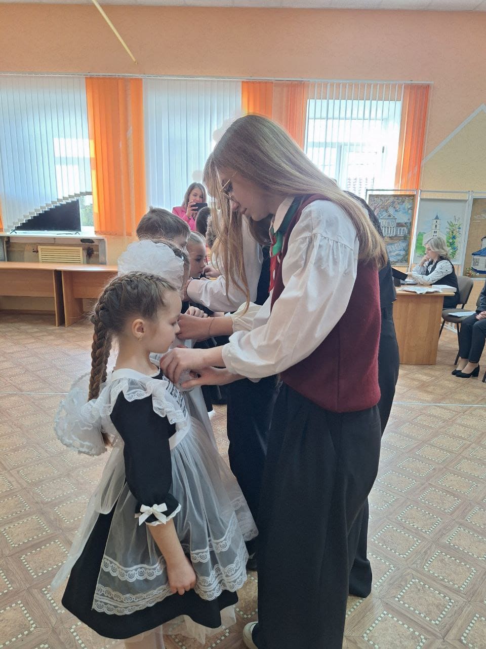 На торжественных церемониях присутствуют почетные гости: Синкевич И.В., начальник отдела идеологической работы и по делам молодежи Верхнедвинского райисполкома; Батарчук Н.В., главный специалист отдела идеологической работы и по делам молодежи Верхнедвинского райисполкома; Тойронен И.И., председатель Верхнедвинской районной организации Общественного объединения «Белая Русь»; Лапеко Д.В., первый секретарь Верхнедвинского районного комитета «Белорусский республиканский союз молодежи»;Корнякова В. Н., председатель Верхнедвинского районного Совета Общественного объединения «Белорусская республиканская пионерская организация».