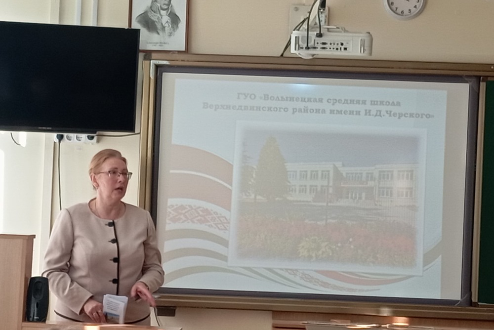 Открыла мероприятие О.М.Воецкая, молодой педагог, выпускница Верхнедвинской гимназии, учитель русского языка и литературы этого учреждения. Она рассказала об учителях, которые сыграли большую роль в ее профессиональном выборе. Отметила, что работа учителем стала неотъемлемой частью её жизни, а школа – это молодость и постоянное движение вперед.